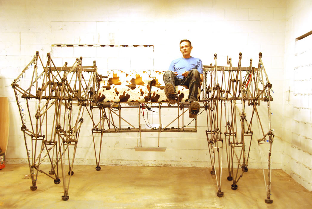 Finally, in the fall of 2014, it had to come to an end. Local crowds had seen Panterragaffe at fairs and street parties a few too many times and it was becoming a fixture rather than a spectacle. He made one more public appearance at a local high school and after a little cutting and snipping Panterragaffe was interred at the local scrap yard, having lived a full and exciting life. He brought joy and wonder to all who saw him.