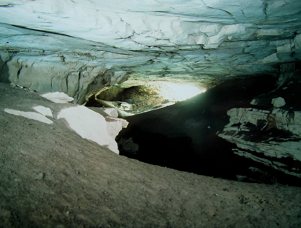 Until the late 1980’s only 500 meters of Camp's Gulf Cave were known, as an extensive ceiling collapse blocked the passage. This image is taken looking out the entrance with the blocked passage behind me. The tunnel is wide enough to drive three city buses through it abreast.